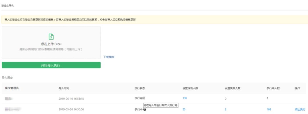 如果对于任何一个学生或是批次的毕业信息有疑惑,执行状态和明细可以直接在后台查看和下载。
